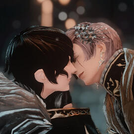 Ishgard was not known to be a friendly nation, and Morgan knew this firsthand. Which was all the more reason for him to question a missive addressed to the Scions for a meeting, penned by an influential dignitary from said nation, while also asking specifically for the presence of the Warrior of Light. Morgan obliges and attends, not wanting to jeopardize their already tenuous relations with the Holy See. There, he was met face-to-face with the Lord Commander of the Temple Knights—Aymeric de Borel. Though he was favored with kind words and praised for his deeds, Morgan felt wary towards him as the meeting progressed. He found him aloof and dismissive, and initially only assisted him out of obligation as a member of the Scions. Though their personal interactions weren't wholly unpleasant (in fact, they were very pleasant), he found it difficult to understand his intentions and thought it best to keep his distance.The shift in Morgan's perspective began after he took refuge in Ishgard at the behest of a good friend, when the Scions were brought low by treachery and its members were branded as fugitives.Not wanting to forsake the friends and allies that granted him succor in his hour of need, Morgan took up arms for Ishgard and assisted in any fashion that he could in their fight against the Horde, all while working closely with Aymeric and spending much time getting to know the man. It was then he came to understand his true character: an earnest and noble knight who would do all in his power to protect his people. Although pragmatic in nature, he does have his bouts of sentimentalism—which was perhaps what drew Morgan to him. He eventually saw his stalwart comrade as a charming gentleman who would often champion him, and before long he found himself harboring feelings for the Elezen.When the Dragonsong War came to an end, when peace was once again realized between man and dragon, Ishgard took its first careful steps towards a brighter future with Aymeric at its helm. During this time, Morgan decided to withhold his feelings for the other, thinking it would only prove a distraction for the lord commander during such a delicate time in Ishgard's history.Little did Morgan know that Aymeric also felt the same about him—perhaps for far longer even. He never did shy away from showing interest in the Warrior of Light, even being the one to take the initiative and request for Morgan's presence at their initial meeting. It was merely out of curiosity at the beginning—after all, it was more difficult not to be fascinated by the deeds of the rumored hero.When Morgan entered Ishgard as a ward of House Fortemps, the close relationship between Aymeric and the High House afforded him ample opportunity to witness Morgan's bravery and selflessness firsthand. Time and time again, he would face all manner of danger with unwavering resolve, in a war that was never his to fight. Aymeric's admiration for him helped strengthen his own resolve to seize a better future for Ishgard. He wanted to show his gratitude to Morgan for constantly being a pillar of support for him, but soon enough he came to realize that it wasn't just mere admiration or gratitude that he felt for his comrade-in-arms—it was something more, something deeper, something stronger…but he dared not overstep his boundaries, and decided against verbalizing what he felt inside for the Warrior of Light.It wasn't until later on that they professed their love for each other, albeit under not-so felicitous circumstances. In the events that followed the battle in Ghimlyt, an unconscious Morgan finds himself in Ishgard's infirmary, with an anxious Aymeric awaiting outside for him to awaken. He was relieved when he saw the adventurer regain consciousness, but the thought of him being mortally wounded by Zenos frightened Aymeric, and in a rare outburst of emotions was spurred to confess his feelings for the other. Morgan was certainly caught off-guard but was elated nonetheless, and happily returned the lord commander's feelings.Amidst the heavy snowfalls of Ishgard did their feelings blossom into love. Aymeric and Morgan's relationship continues to thrive, their love for each other abounding and never waning. Despite both individuals constantly plagued by responsibilities, they make it a point to see each other as often as time permits, with Morgan coming home to Ishgard and Aymeric always making time for him when his travels bring him back to the Holy See—back to him.On days he isn't called to duty, Morgan could be found residing in Borel manor when he does not particularly wish to be in the public's eye. He knows he has a home in Fortemps manor as well, but at times he prefers the quiet company of Aymeric's old cat despite its ornery temperament. Lord Edmont certainly isn't opposed to the arrangement, noticing the change in Aymeric's behavior whenever Morgan is in Ishgard. Though the nigh endless paperwork continue to keep him confined in his office for hours on end, Aymeric has made strides in finding balance between work and rest, making certain to come home to Morgan (and his feline companion) after the day is done.